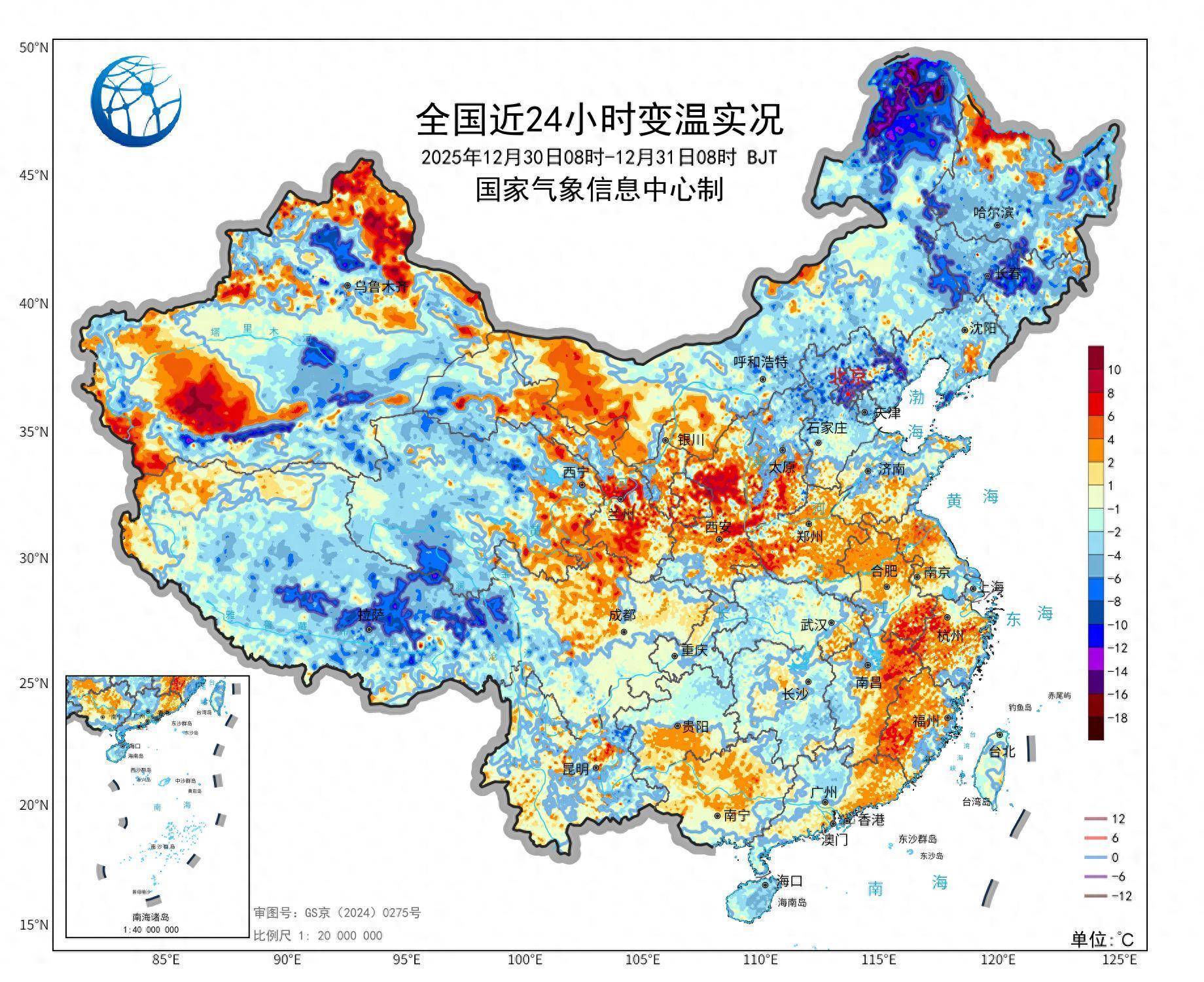 预计未来三天,多股冷空气东移南下影响我国中东部地区,其间西北地区东部、黄淮西部、江淮及以南地区日平均或最低气温将下降6℃至10℃,部分地区降幅可达10℃至12℃;2026年1月3日早晨,最低气温0℃线将南压至湖南中南部至福建南部一带;另外,东部和东南部海域有7至8级风,阵风9至10级。